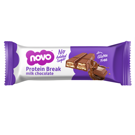 Novo Protein Break is a delicious low sugar, two finger bar, filled with a chocolate cream and crispy wafer, all enrobed in milk chocolate. It's the perfect snack, with an added protein boost, to enjoy anytime and anywhere - not to mention it's gluten free!